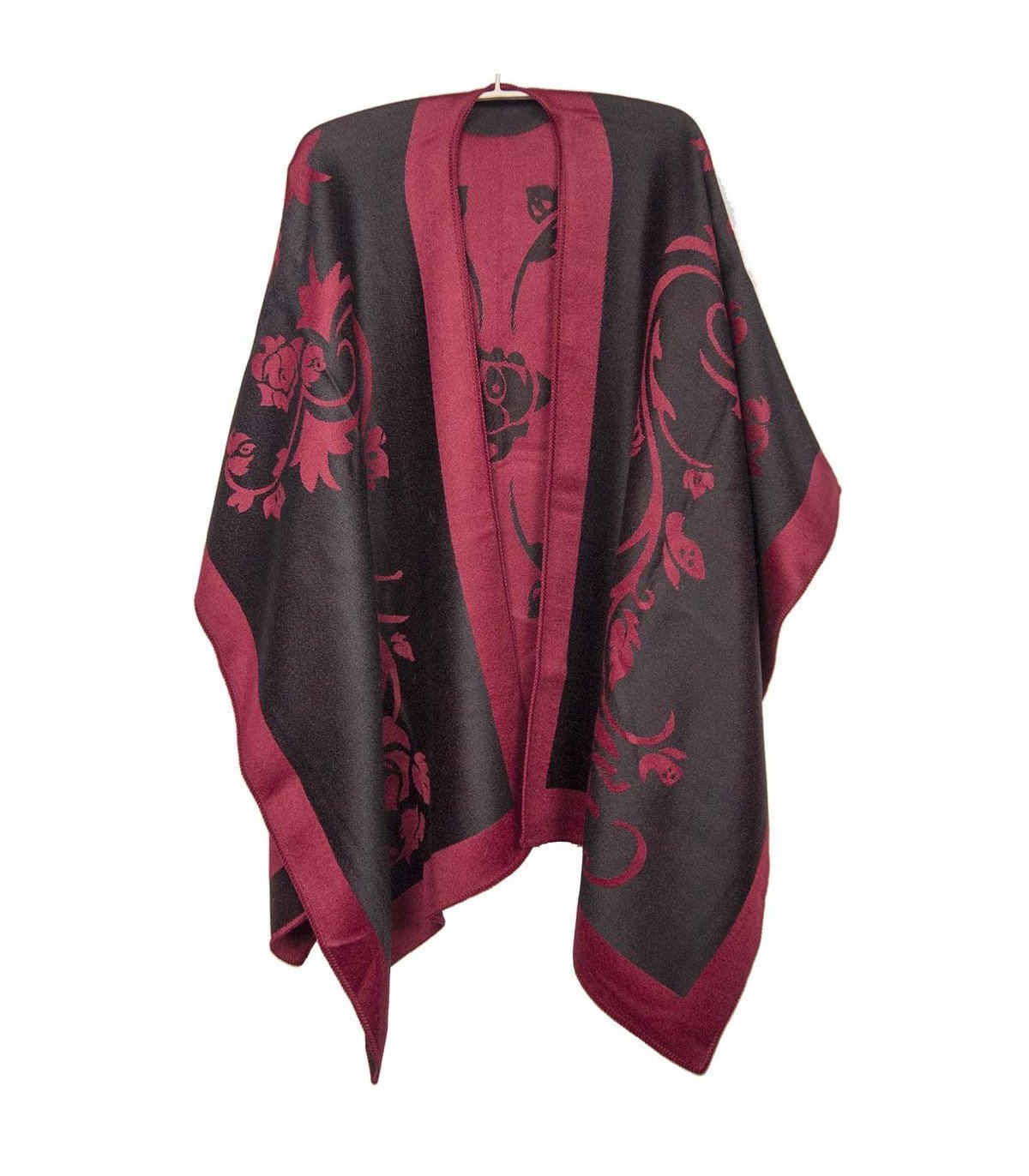 Cape ouverte, réversible, qui peut compléter une tenue à porter en châle. Tissage fin et léger aux motifs baroques.